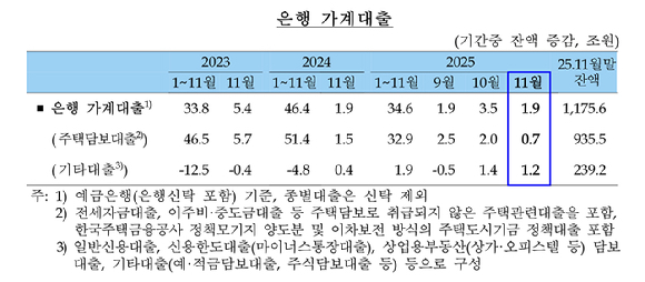 한국은행과 금융위원회가 10일 발표한 11월 금융시장·가계대출 동향에 따르면 은행의 가계대출은 1조 9000억원 증가해 전월(3조 5000억원) 대비 증가 큰 폭이 줄었다.