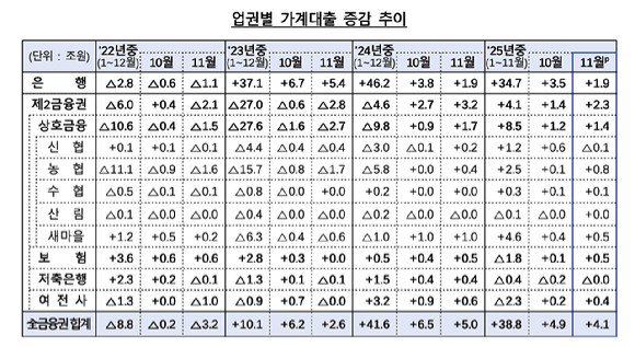 전 금융권 가계대출은 4.1조↑…비은행 가계대출 늘어
