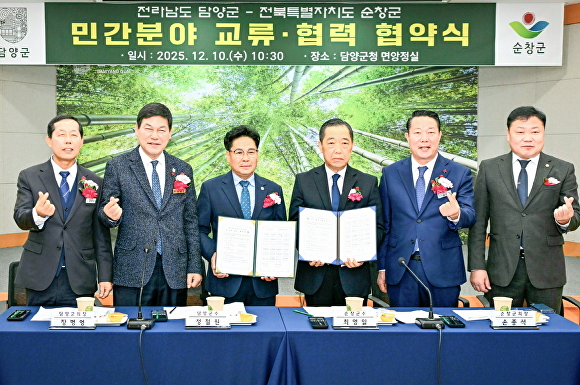 순창군은 10일 담양군청 면앙정실에서 ‘순창군-담양군 민간분야 교류 협력 협약식’을 가졌다고 밝혔다.