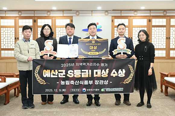 [아이뉴스24 정다운 기자] 충남 예산군이 농림축산식품부와 한국농수산식품유통공사(aT)가 실시한 2025년 지역먹거리지수 평가에서 전년 대비 두 단계 상승한 최고 등급 S등급을 받으며 대상을 수상했다.