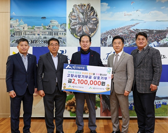[아이뉴스24 김상진 기자] 전남 강진군산림조합과 진도군산림조합 임직원들이 지난 11일 진도군청에서 고향사랑기부금 210만원을 상호 지역에 기부했다.