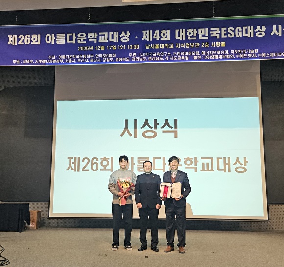 아름다운학교대상은 교육부와 환경부, 시·도 교육청이 후원하는 상으로, 학교 공간과 교육활동 전반에서 학생 성장을 중심에 둔 교육을 실천한 학교에 수여한다.