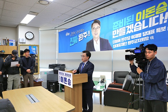 이돈승 전 특보는 이날 완주군청과 전북특별자치도의회 브리핑룸에서 출마선언 기자회견을 열고 “군민이 주인되는 진짜 완주를 만들겠다”고 출마의 변을 밝혔다.