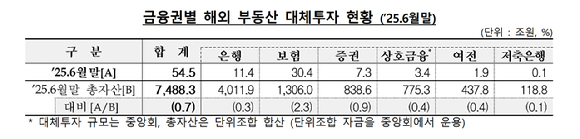 19일 금융감독원의 '금융회사 해외 부동산 대체투자 현황'에 따르면, 대체투자 잔액은 보험 30조 4000억원, 은행 11조 4000억원, 증권 7조 3000억원, 상호금융 3조 4000억원, 여신전문금융 1조 9000억원, 저축은행 1000억원으로 집계됐다.