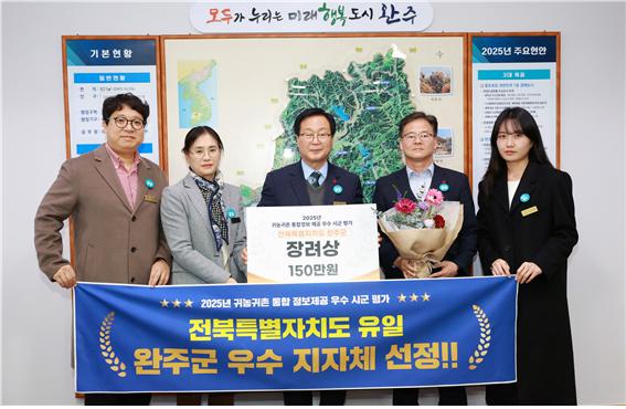 [아이뉴스24 박종수 기자] 전북 완주군이 농림축산식품부가 주관한 ‘2025년 귀농귀촌 통합정보 제공 우수 시군 평가’에서 우수 지자체로 선정돼 장려상을 받았다.