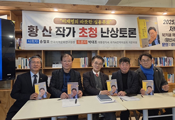 [아이뉴스24 정예진 기자] 한국지역문화연구원이 지난 19일 경상남도 양산 양주동 북카페 책읽어주는남자에서 ‘이재명의 따뜻한 실용주의’ 저자 황산 작가 초청 난상토론회를 개최했다.