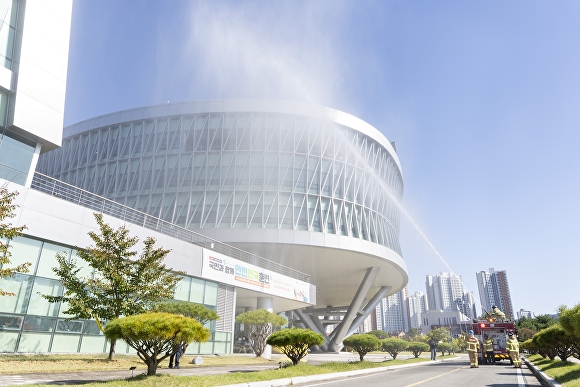 지하주차장 전기차 배터리에서 발생한 화재가 건물 전체로 번져나가는 상황을 가정해 재난안전통신망(PS-LTE)과 국가재난관리정보시스템(NDMS)을 실시간 연계해 인명·재산 피해를 최소화하는 훈련을 진행했다.