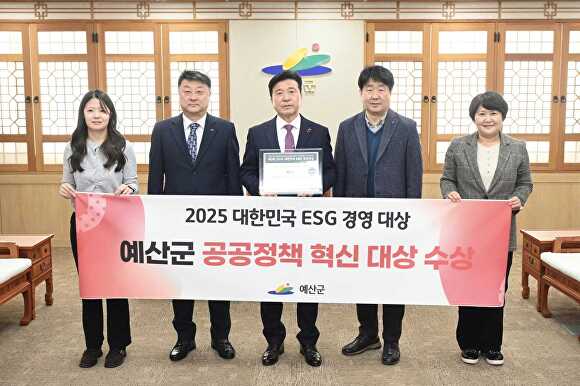 [아이뉴스24 정다운 기자] 충남 예산군이 ‘제2회 2025 대한민국 ESG 혁신 어워즈(대한민국 ESG 경영대상)’ 시상식에서 공공정책 혁신 부문 대상을 받았다.