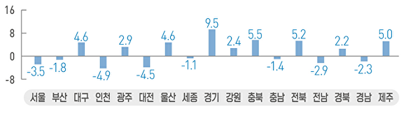 광제조업은 반도체를 중심으로 한 수출 호조가 이어지면서 반도체·전자부품 및 의약품 생산이 증가해 전년동기대비 5.5% 성장하며 지역경제 전반의 상승 흐름을 견인하는 핵심 동력으로 작용했다.