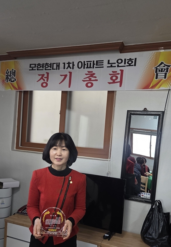 모현동 현대1차아파트 노인회는 지난 27일 정기총회를 열고 송영자 의원에 대해 경로당 운영 과정에서 제기된 민원을 세심하게 살피고, 관계 부서와의 지속적인 소통을 통해 개선에 힘써온 점을 높게 평가했다.