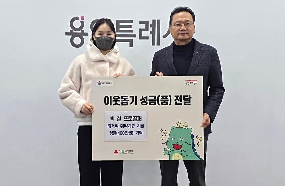 박 선수는 지난 26일 용인특례시 수지구청을 방문해 이영민 구청장에게 성금을 전달했다.