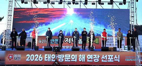 태안군은 지난해 12월 31일 안면읍 꽃지해안공원 특설무대에서 제21회 안면도 저녁놀 축제를 겸해 ‘2026 태안 방문의 해 선포식’을 열고 연장 운영의 시작을 알렸다. 연말 서해 3대 해넘이 명소로 꼽히는 꽃지 해수욕장에서 선포식을 연 점도 상징성을 더했다.