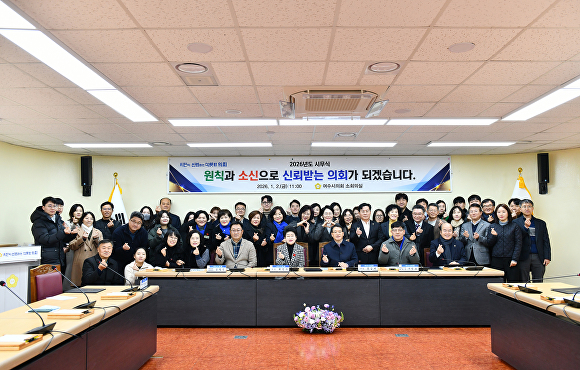 청렴서약에 이어 열린 시무식에서는 신년사와 새해 덕담을 통해 지난 한 해 의정 성과를 돌아보고, 올해 여수 발전과 시민 삶의 질 향상을 위한 각오를 다지는 시간을 가졌다.
