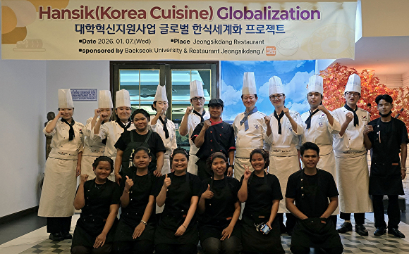 백석대는 대학혁신사업의 하나로 지난 5일부터 9일까지 태국 푸켓에서 해외 호텔 현장 실습과 한식 시연을 진행하고 지역 호텔·관광·외식 산업체와 산학협력 MOU를 체결하는 ‘한식 세계화’ 프로젝트를 마무리했다.