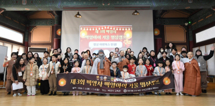 [아이뉴스24 이진우 기자] 동국대 WISE캠퍼스 유아교육과는 지난 1월 3일부터 4일까지 1박 2일 일정으로 전남 장성 백양사에서 어린이 겨울 명상 캠프를 개최했다. 이번 캠프는 유치부부터 초등학교 6학년까지 어린이 40여 명이 참여했다.