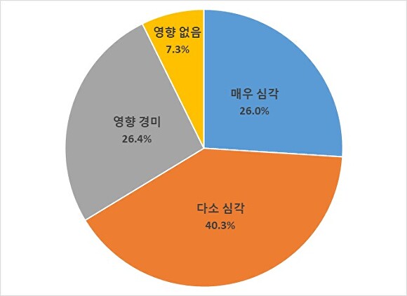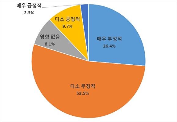 환율 급등이 경영 전반에 미치는 영향에 대해서는 응답 기업의 80%가량이 ‘부정적 영향(매우 부정적+다소 부정적)’을 받고 있다고 답했다. 반면 환율 상승이 긍정적으로 작용하고 있다는 기업은 12%에 불과했다.