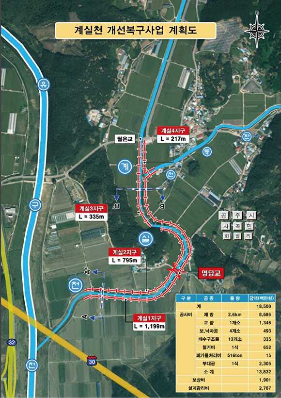 [아이뉴스24 정다운 기자] 공주시가 지난해 집중호우로 큰 피해가 발생한 사곡면 화월리 계실천 일원을 ‘재해 예방형 하천’으로 바꾸는 개선복구사업에 착수했다. 총사업비 185억원을 투입해 제방·호안 정비는 물론 하천 폭 확장과 교량 재가설까지 포함한 ‘구조 개선’에 방점을 찍었다.