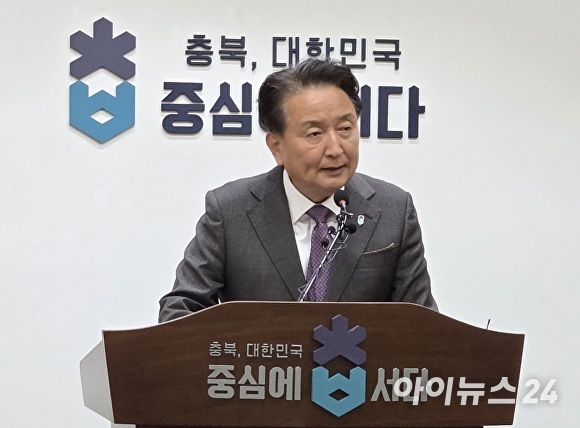 김영환 충북도지사는 12일 도청 브리핑룸에서 기자회견을 열고 대전·충남 통합에 따른 ‘중부내륙특별법 개정’을 촉구했다.