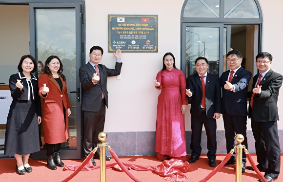 이 시장은 준공식에서 현판 제막과 테이프 커팅을 진행한 뒤, 도서관 건립에 기여한 조당호 (사)국제연꽃마을 회장, 이기찬 (사)국제연꽃마을 본부장, 응우옌 히우 다낭시 광푸구 인민위원회 부구청장 등 관계자 3명에게 감사패를 전달했다.