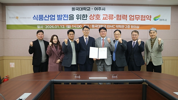 이번 협약은 동국대가 보유한 그린바이오 분야의 우수한 연구 역량을 바탕으로 여주시 지역 농산물을 활용한 기능성 농산물 및 건강기능식품 소재 개발 추진 등 실질적인 협력 체계를 구축하기 위해 마련됐다.