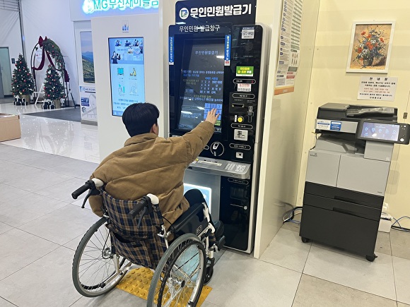 휠체어 사용자가 쉽게 이용하도록 최대 20㎝까지 높낮이를 조절하는 리프트와 근접 센서로 민원인 접근을 확인한 뒤 안내 서비스도 제공한다.