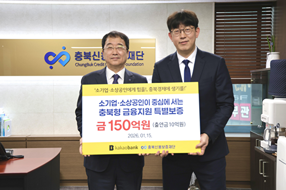 카카오뱅크는 충북신보에 10억원을 특별출연하고, 충북신보는 이를 재원으로 도내 소기업·소상공인에게 총 150억원의 보증을 우대 지원한다.