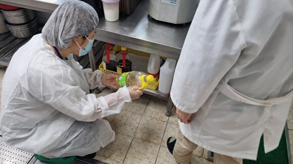 충북도 관계자가 명절 성수식품 업체 식재료의 유통기한을 살피고 있다. [사진=충북도]