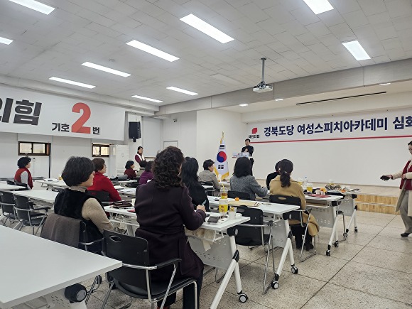 [아이뉴스24 이창재 기자] 국민의힘 국민의힘 경북도당은 19일부터 20일까지 이틀간 경북도당 5층 강당에서 ‘여성 스피치 아카데미 심화반’을 개최하고, 여성 핵심당직자 역량 강화에 나섰다.