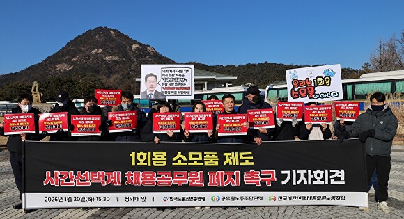 노조는 “2024년 말 기준 약 3500명의 시간선택제 채용공무원을 현 체제로 유지할 경우 별도 인사·정원 관리로 행정 낭비가 향후 20여 년간 지속될 것”이라며 “제도를 전면 폐지하고 기존 인력은 전일제로 일괄 전환해야 한다”고 주장했다.
