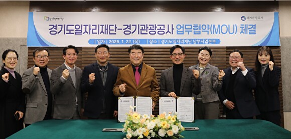[아이뉴스24 김정수 기자] 경기도일자리재단과 경기관광공사는 22일 경기도일자리재단 남부사업본부에서 ‘경기북부 관광 활성화 및 유연근무 확산을 위한 업무협약(MOU)’을 체결했다.