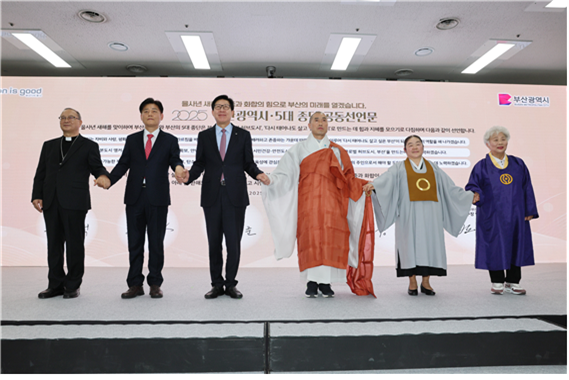 특히 시와 5대 종단은 이날 ‘시민이 행복한 글로벌 허브 도시 부산’ 실현을 위한 공동선언문을 채택할 계획이다. 선언문에는 △서로 배려하는 따뜻한 공동체 완성 △‘15분 도시’ 민간 협력 확대 △글로벌 관광도시 경쟁력 강화 △가족 친화·평생교육 도시 조성 △자살 예방 및 생명 존중 문화 확산 등 협력 방안이 담길 예정이다.