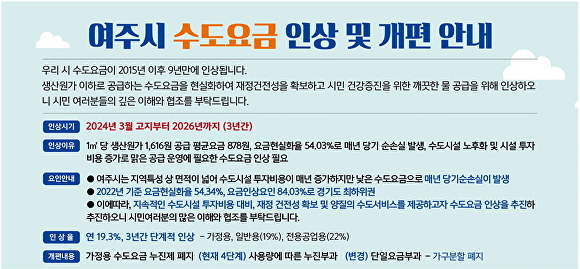 [아이뉴스24 임정규 기자] 경기도 여주시가 오는 3월 고지분부터 수도요금을 19.3% 인상한다.