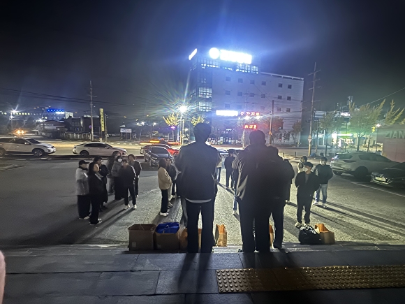 차량번호판 영치를 위해 김제시 직원들이 새벽 회의를 하고 있다. [사진=김제시 ]