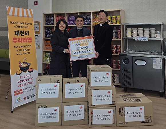 릴레이 후원 1호로 지난해 김창규 제천시장이, 2호로는 국민의힘 엄태영 국회의원(충북 제천·단양)이 참여했다. 지난 27일엔 후원 3호로 이상범 씨알푸드 대표가 ‘우리 라면’을 찾았다.