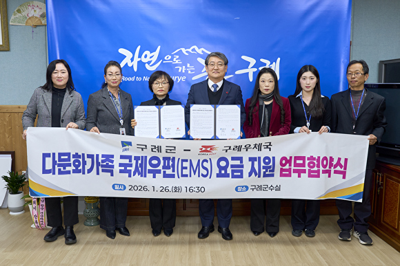 [아이뉴스24 김상진 기자] 전남 구례군은 지난 26일 구례우체국과 ‘다문화가족 국제우편(EMS) 요금 지원’을 위한 업무 협약을 체결했다고 28일 밝혔다.