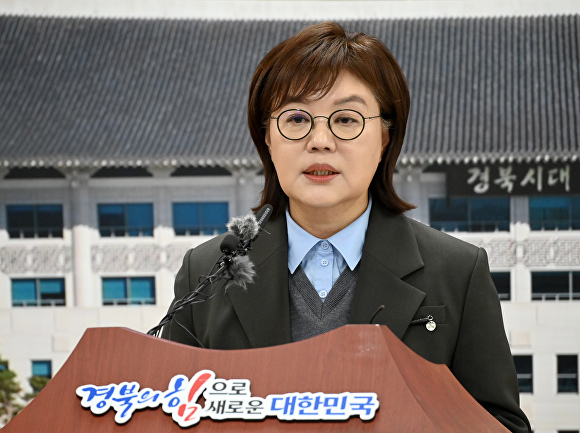 29일 양금희 경제부지사가 경북도청에서 기자회견을 하고 있다. [사진=경북도청]
