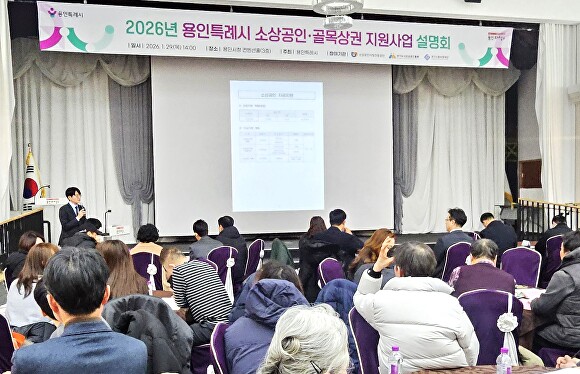 [아이뉴스24 정재수 기자] 경기도 용인특례시는 지난 29일 시청 3층 컨벤션홀에서 지역 소상공인을 대상으로 ‘2026년 소상공인·골목상권 지원사업 설명회’를 개최했다.