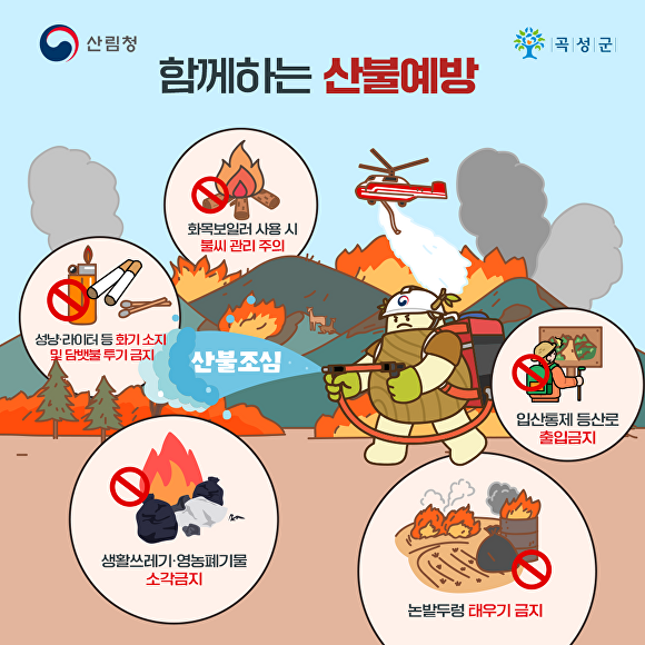 곡성군 관계자는 “산불은 사전 예방이 가장 중요한 사안”이라며 “소중한 산림자원과 군민의 생명·재산을 함께 지켜나갈 수 있도록 적극적인 동참을 부탁드린다”고 말했다.