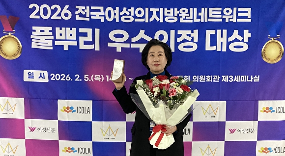 이해양 의원은 지난 5일 서울 국회의사당에서 열린 2026 전국여성지방의원네트워크 풀뿌리 우수의정 시상식 생활 정치 분야의 특별한 성과를 이룬 공로로 수상의 영예를 안았다.