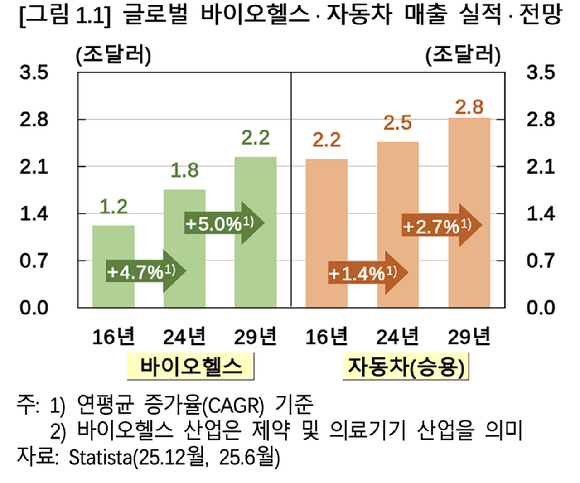 9일 한국은행은 '첨단 바이오헬스 산업 육성 방안' 이슈노트를 통해 "국내 산업은 바이오시밀러와 위탁개발생산(CDMO) 등 틈새시장을 중심으로 외형 성장을 이뤘지만, 혁신 신약과 첨단 의료기기 분야에선 원천기술 부족으로 선도국과 격차가 크다"라며 이같이 밝혔다.