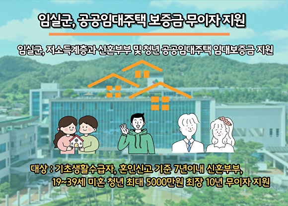 [아이뉴스24 박종수 기자] 전북 임실군이 관내 무주택 기초생활수급자와 신혼부부, 청년의 주거 안정을 위해 ‘공공임대주택 임대보증금 지원사업’을 지속 추진하며 실질적인 주거복지 강화에 나선다.