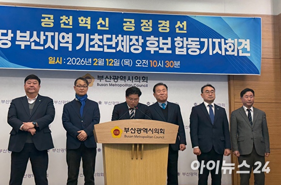 전원석(사하구), 이상호(부산진구), 정진우(강서구), 도용회(동래구), 노기섭(북구), 김부민(사상구) 출마예정자들은 12일 부산광역시의회 브리핑룸에서 기자회견을 열고 “공정한 공천을 위한 실천적 노력이 이어질 때 부산시민의 신뢰도 더욱 두터워질 것”이라고 밝혔다.
