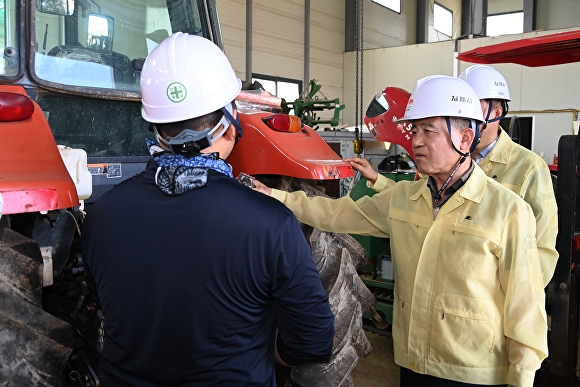 정성주 시장이 농기계 안전관리 실태를 점검하고 있다. [사진=김제시 ]