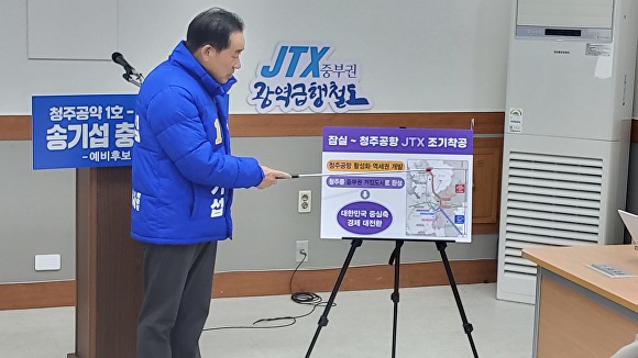 [아이뉴스24 이용민 기자] 더불어민주당 송기섭 충북도지사 예비후보가 JTX(중부광역급행철도) 조기 착공을 청주 제1호 공약으로 제시했다.