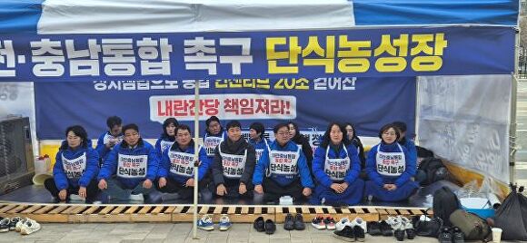 민주당 대전시당은 이날 단식에 들어가며 발표한 성명에서 “대전·충남 통합은 잠시 멈췄어도 결코 좌절될 수 없다”며 “지역의 미래와 청년들의 명운이 걸린 ‘통합의 길’을 포기하지 않겠다”고 밝혔다.
