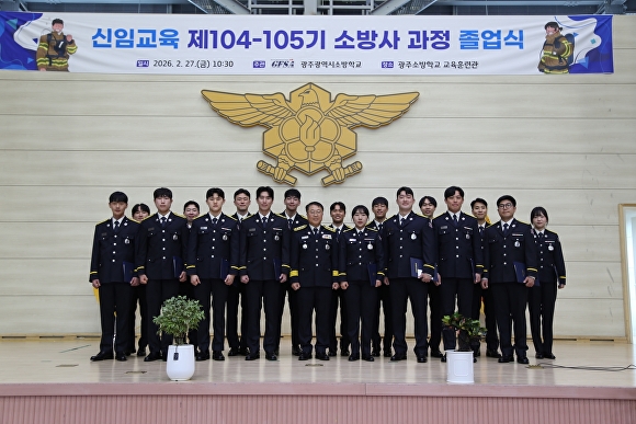 [아이뉴스24 한봉수 기자] 광주광역시 소방학교는 27일 교육훈련관에서 제104·105기 신임교육 소방사 과정 졸업식을 개최했다.