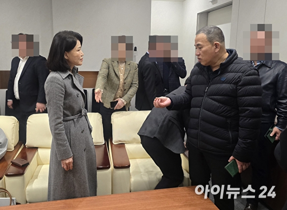 [아이뉴스24 임승제 기자] 지난 1일 오후 강기윤 전 한국남동발전 사장 출판기념회가 열린 경남 창원시 성산구 창원컨벤션센터 컨벤션홀에서 대구시장 출마를 준비 중인 이진숙 전 방송통신위원장과 명태균 씨가 만나 인사를 나눈 뒤 대화하고 있다. 이들은 이날 첫 인사를 나눴다.