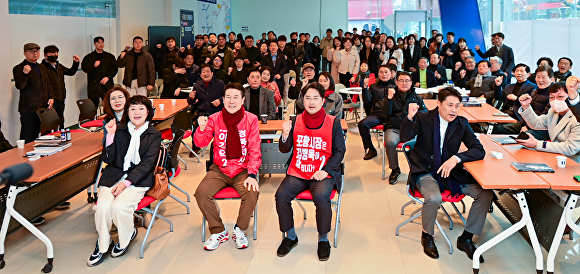 이강덕 전 시장은 김 예비후보의 저서 '죽도시장에 기차가 와야 포항이 삽니다'를 언급하며 "포항의 고질적인 문제인 구도심 공동화 현상에 대해 젊은 시각에서 현실적인 대안을 제시한 점이 인상 깊다"며 "중앙 정치 무대에서 쌓은 김 후보의 경험이 지역 발전에 소중한 자산이 되길 바란다"고 덕담을 건넸다.