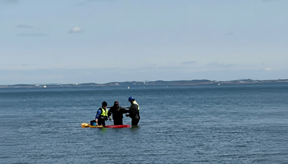 구조 대원은 구조보드를 지참하고 직접 입수해 해안가로부터 약 300m 떨어진 지점에서 A씨를 안전하게 구조했다.