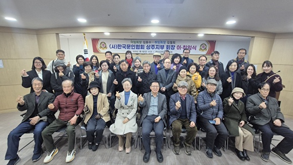 상주지부는 6일 상주시 명실상감한우프라자 2층 회의실에서 상주문협 회원과 상주예총 산하 7개 단체 지부장, 지역 문학단체 회장 및 회원 등 50여 명이 참석한 가운데 회장 이·취임식을 개최했다.